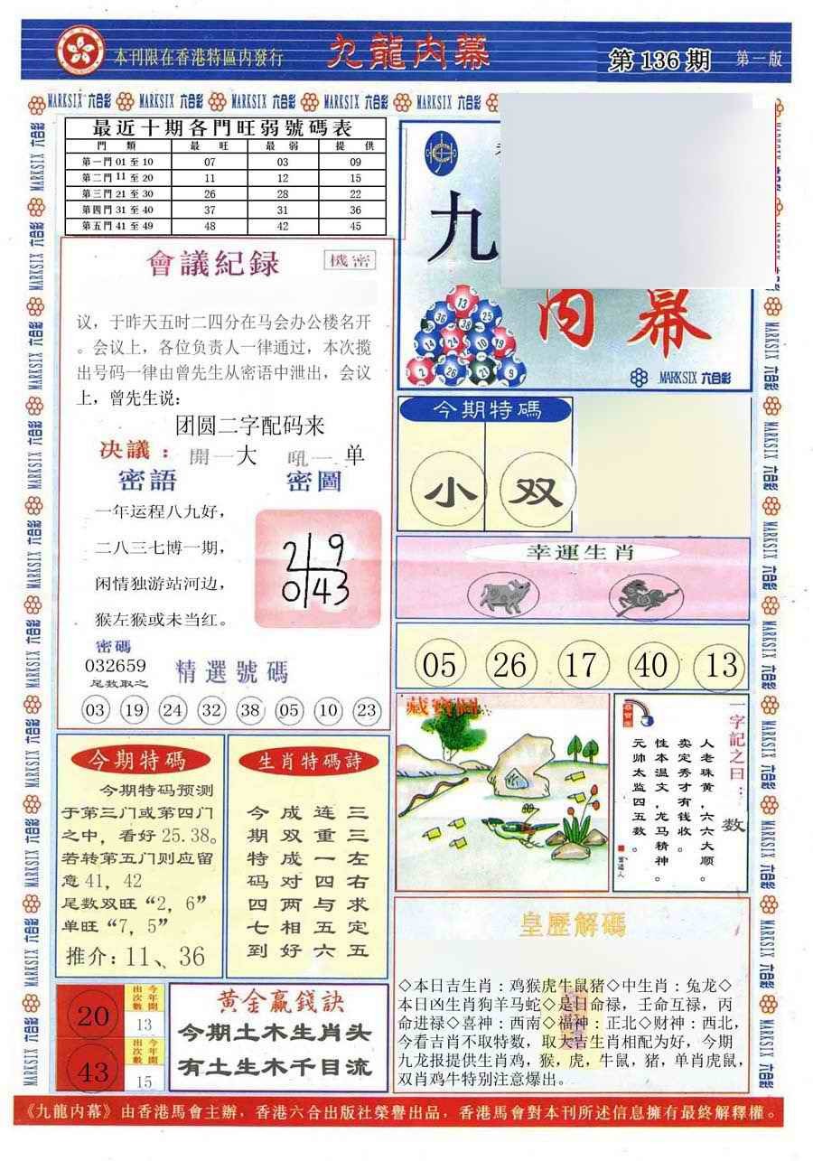首页 > 图片大全 > 136期(新版)九龙内幕A[图]