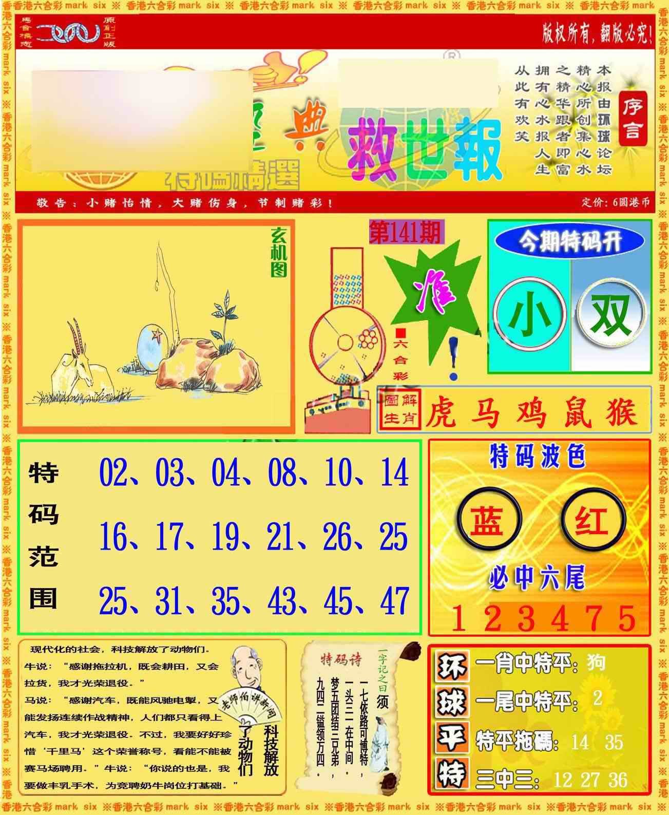 141期环球特码救世报[图] | 爱码网