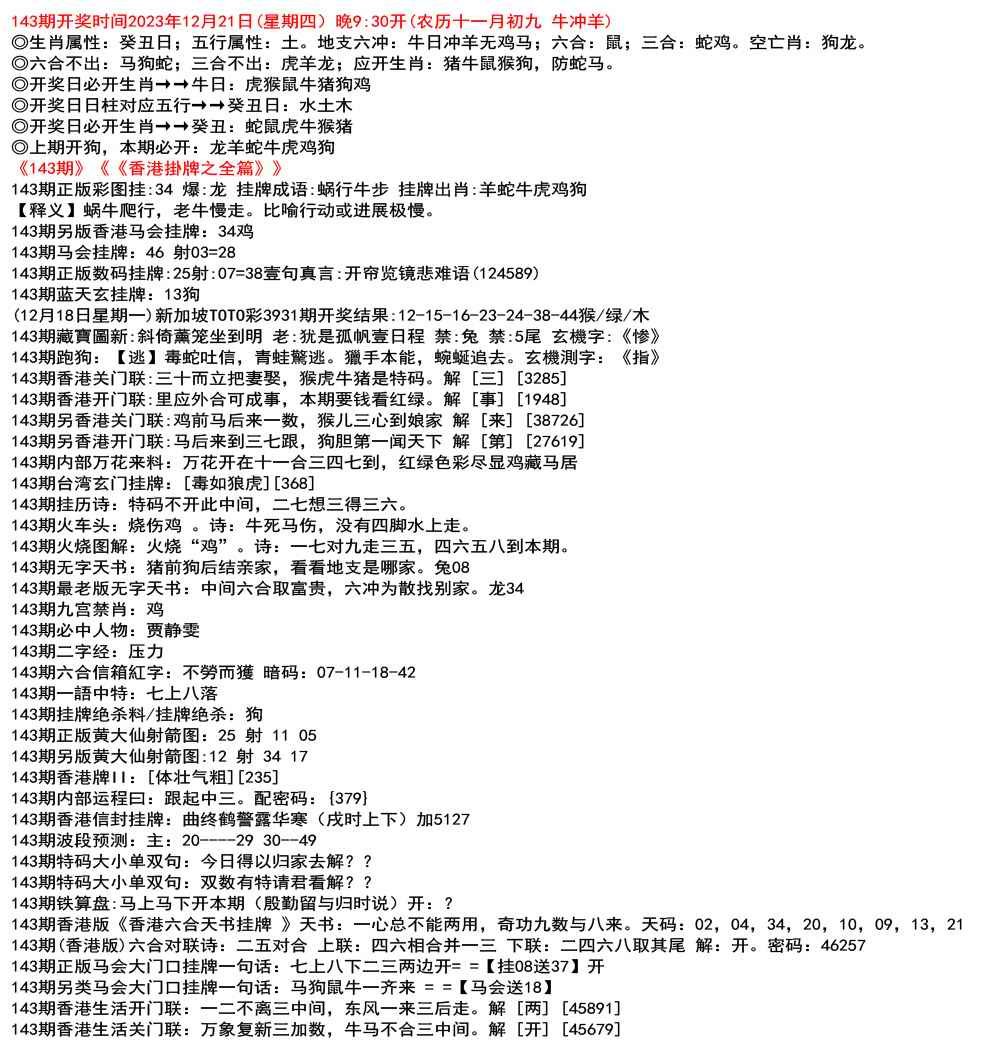 > 143期九龙挂牌全篇[图]